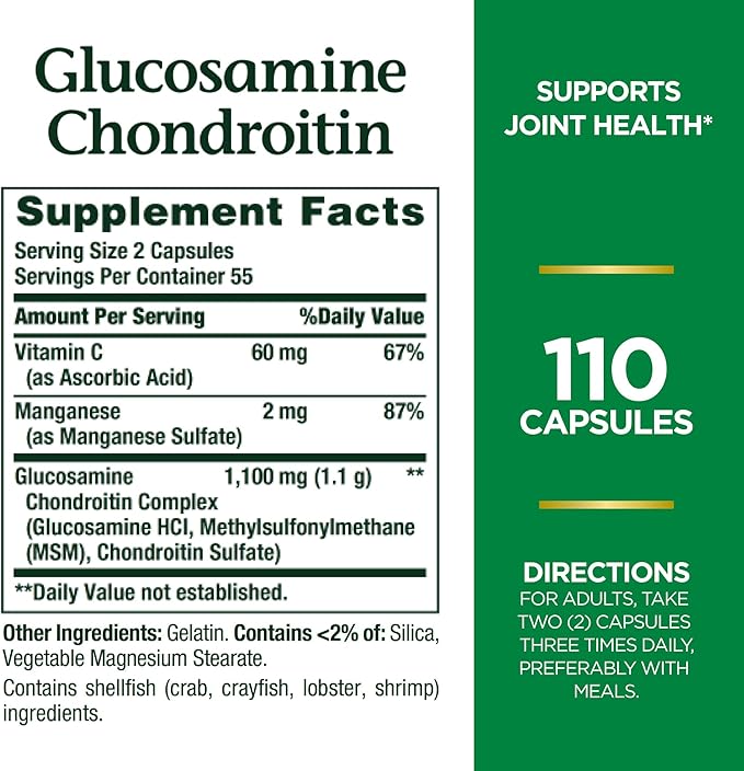 Nature's Bounty Glucosamine Chondroitin Pills and Dietary Supplement, Support Joint Health, 110 Capsules