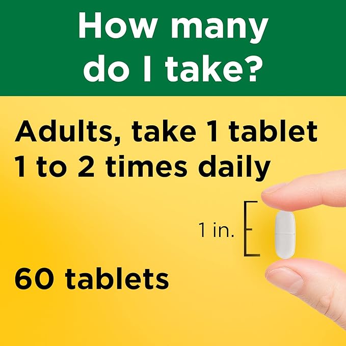 • Adults take one Nature Made Calcium with Vitamin D3 tablet 1 to 2 times daily with water and a meal