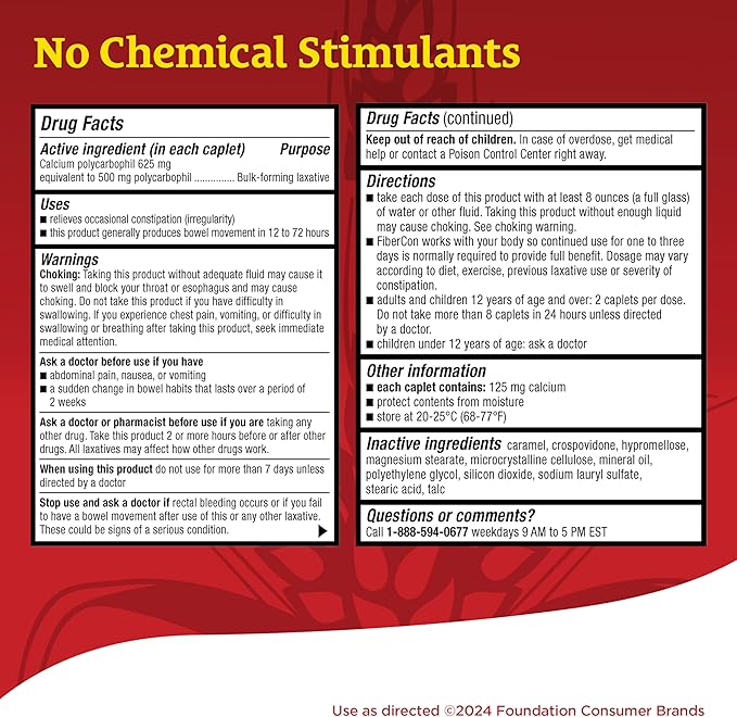 • EASY TO TAKE: Fibercon's caplets are easy to take on the go. Adults & children 12 years and over. HSA and FSA eligible item. Use as directed.