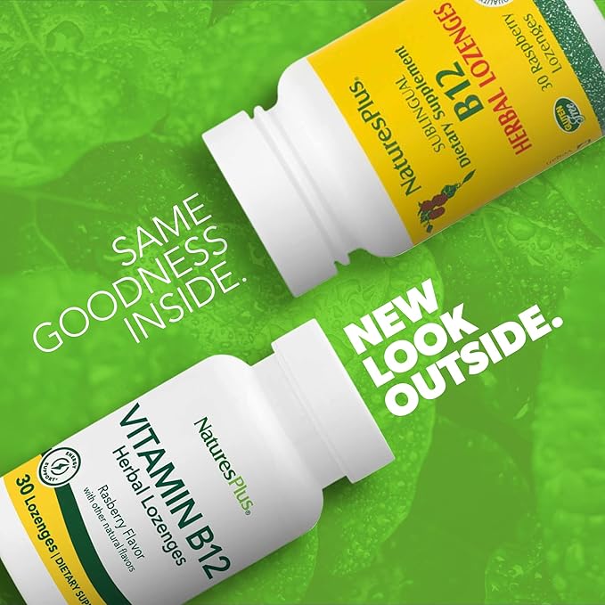 Natures Plus B12 Herbal Lozenges (Methylcobalamin) - 1000 mcg, 30 Sublingual Lozenges - Raspberry - Maximum Absorption Red Blood Cell Support - Energy Booster - Vegetarian, Gluten-Free - 30 Servings