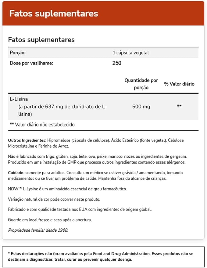 L-Lysine 500 mg - 250 Capsules by NOW