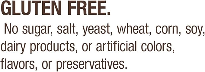 • Gluten free. No wheat, corn, soy, dairy, or artificial colors or flavors.