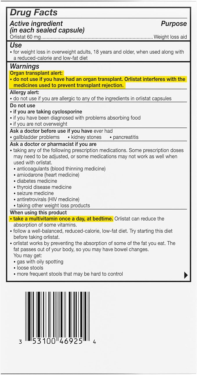 alli Weight Loss Diet Pills, Orlistat 60 mg Capsules, Non Prescription Weight Loss Aid, 120 Count Refill Pack