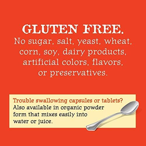 • Gluten-free and vegetarian. No corn, soy, dairy, wheat, yeast-derived ingredients, or artificial colors, flavors, or preservatives.