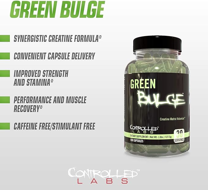 • Promotes, Strength, Stamina, And Performance: Get the most out of your workouts with this advanced creatine volumizer by Controlled Labs. Green Bulge contains the HyperBULGE complex that combines Turmeric, GYMnemic Acid, and more. HyperCRE combines Magnesium, Creatine Chelate, and 2CM (Dicreatine Malate) all delivered in each serving.