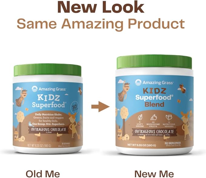 Amazing Grass Kidz Superfood: Organic Greens, Fruits, Veggies, Beet Root Powder & Probiotics for Healthy Kids, Outrageous Chocolate, 30 Servings, 6.35 Ounce (Pack of 1)