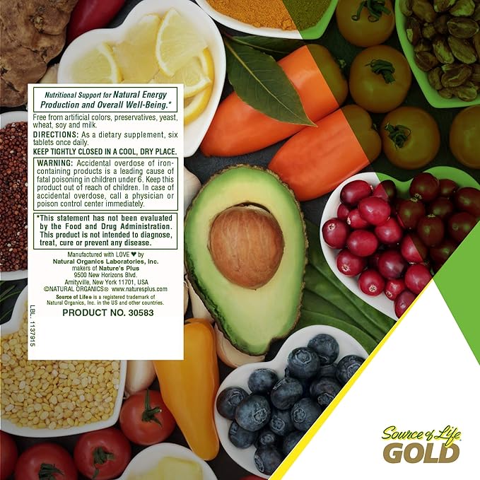 Natures Plus Source of Life Mini-Tabs - Easy to Swallow Whole Food Multivitamin with Chelated Minerals, Energy Booster - 180 Vegetarian Mini Tablets (30 Servings)