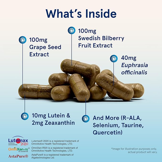 • Antioxidant Function: This dietary supplement supports visual function and ocular antioxidant status with lutein, zeaxanthin, Mirtoselect bilberry extract, grape seed extract, R-alpha lipoic acid, selenium, vitamin B2 and quercetin(1)