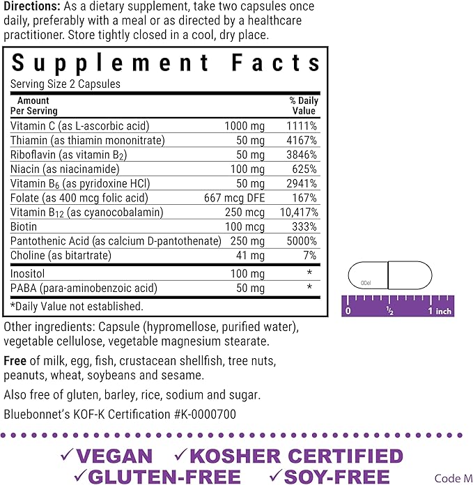 • Contains a complex of B vitamins plus Vitamin C in vegetable capsules