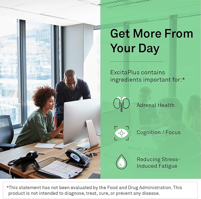 • Energy, Stress and Adrenal Support - Feeling underpowered or overburdened by everyday stressors? ExcitaPlus' comprehensive adrenal support complex contains ingredients important for adrenal health and reducing stress-induced tiredness and fatigue.*