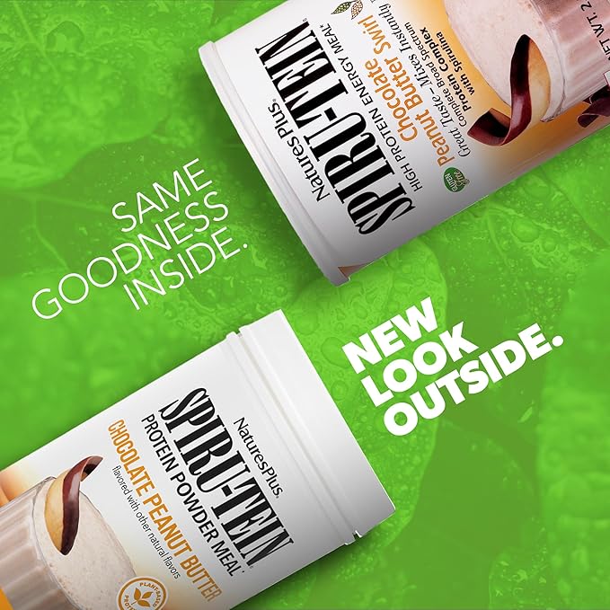 Natures Plus SPIRU-TEIN Shake - Chocolate Peanut Butter - 2.3 lbs, Spirulina Protein Powder - Plant Based Meal Replacement, Vitamins & Minerals for Energy - Vegetarian, Gluten-Free - 34 Servings