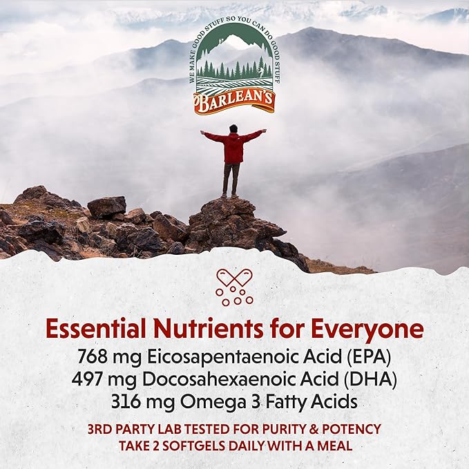 • ULTRA-PURIFIED HIGH POTENCY FISH OIL: Sustainably harvested from fresh, wild-caught, small-bodied fish in pristine waters, our softgels are ultra-purified, pharmaceutical grade fish oil in natural triglyceride form. Barlean's fish oil pills are always third party tested and free of mercury and other heavy metals