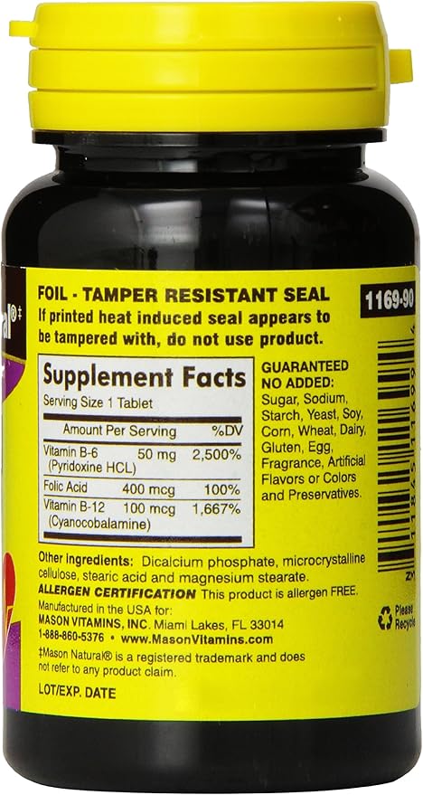 MASON NATURAL Heart Formula B6/B12/Folic Acid Tablets, Dietary Supplement Supports Cardiovascular Health, Red Blood Cell Formation, Metabolic Function, 90 Count (Pack of 3)