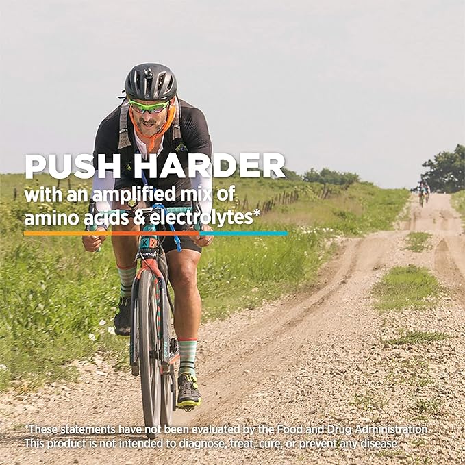 • 1425mg of amino acids help decrease muscle damage and mental fatigue whether running, biking, hiking or skiing