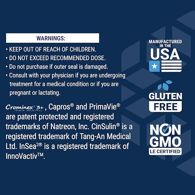 • Special Ingredients : Chromium, CinSulin® Cinnamon water extract (bark), InSea2® [proprietary composition of demineralized polyphenols from brown seaweeds kelp and bladderwrack], Iodine Chromium, CinSulin® Cinnamon water extract (bark), InSea2® [proprietary composition of demineralized polyphenols from brown seaweeds kelp and bladderwrack… See more