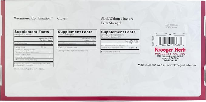 Kroeger Herb, Wormwood Herb Supplement Kit, Black Walnut, Clove, Quassia, Worm Wood Detox Cleanse - Capsules, Non-GMO, Gluten Free, No Preservatives or Fillers, Made in USA