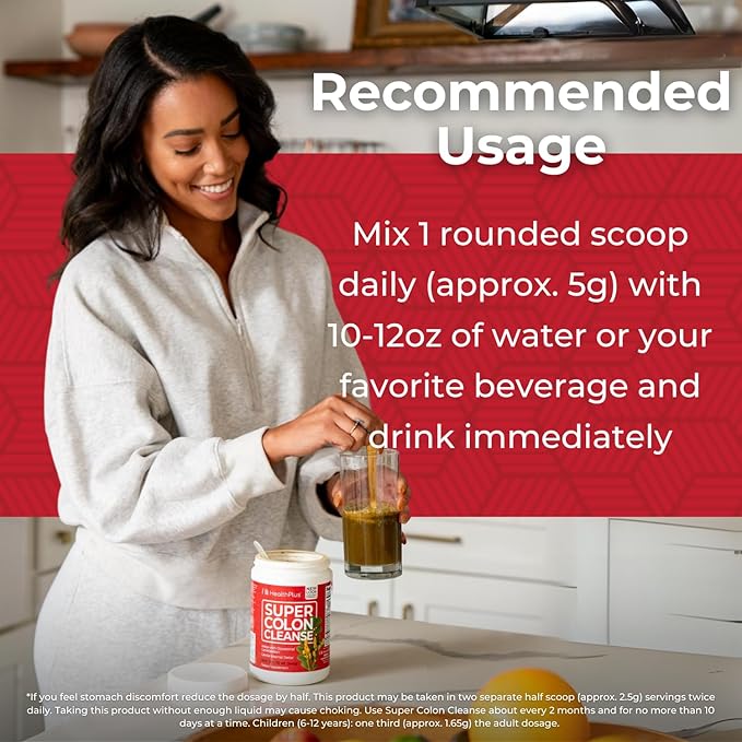 Health Plus Super Colon Cleanse, 12 oz Powder, 68 Servings - Natural Detox, Digestive Constipation Relief, Gentle Gut Cleanse with Psyllium Husk & Senna Leaf