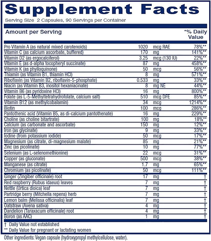 Vitanica Maternal Symmetry, Prenatal and Postnatal Vitamins, Vegan/Vegetarian, 180 Capsules