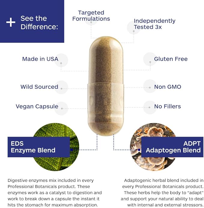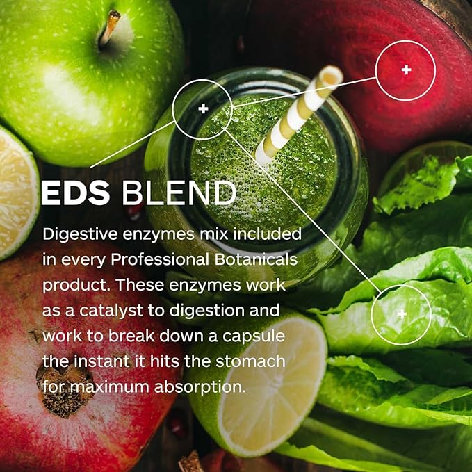• EXCLUSIVE EDS BLEND: EDS The Enzyme Delivery System is a proprietary blend of enzymes added to most of the Professional Botanicals formulas. This proprietary blend harnesses the power of enzymes to improve the body’s absorption of vitamins, co-factors and key ingredients, and improves the body’s absorption of these powerful formulas for better absorption and breakdown.