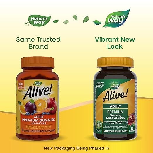 Nature's Way Alive! Adult Premium Multivitamin Gummy, Full B-Vitamin Complex, Supports Energy Metabolism & Heart Health*, 90 Gummies (Packaging May Vary)