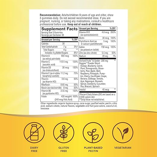 • Formulated with 14 vitamins and minerals for general wellness, including vitamin A, vitamin C, vitamin D3, vitamin E, vitamin B6 and B12, biotin, and zinc.