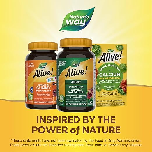• Nature's Way Alive! Premium Adult Gummy Multivitamins support energy metabolism, eye health, heart health, immune health, and bone health.*
