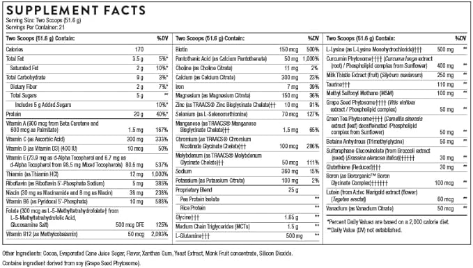 • Powerhouse Nutrition: All-in-one daily protein, multi-vitamin/mineral supplement with added antioxidant support