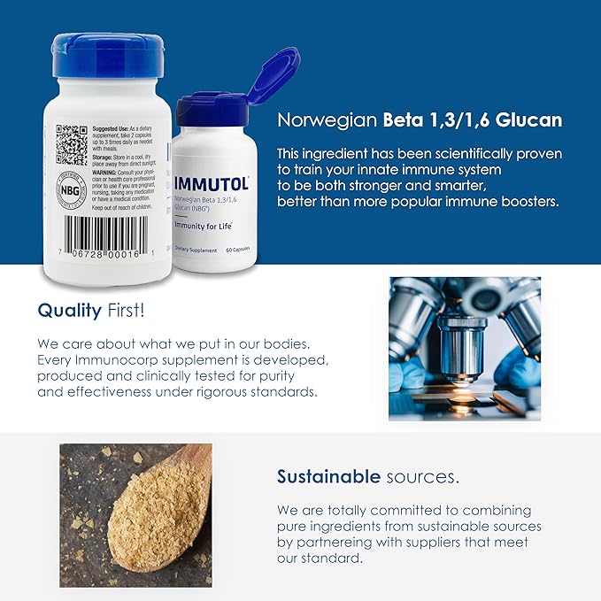 Immutol Immune Support Supplement with 750mg of Beta Glucan 1,3 1,6 - Natural Ingredients, High Potency to Boost Immunity and Overall Wellness, 60 Capsules (60)