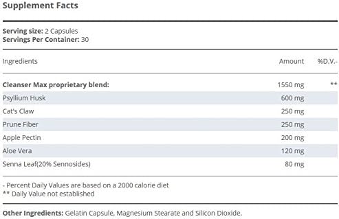 Cleanser Max, Full-Body Detox Cleanse of Toxins (60 Capsules)