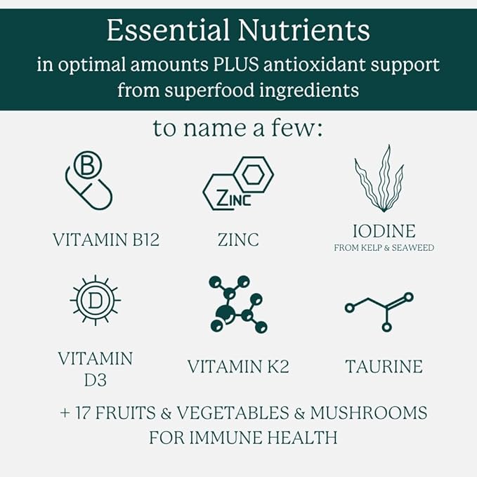 • MULTI FOR HEALTH, STRENGTH, and LONGEVITY: Support your healthy diet with a daily dose of science-backed vitamins/minerals meticulously crafted from whole foods, including organic fruits and vegetables, enriched with powerful antioxidants and phytochemicals. Ideal for vegans or near-vegans, you’ll find the optimal amount of low dietary vitamins like B12, iodine, D3, K2, and zinc ensuring that you get optimal exposure on your healthy journey.
