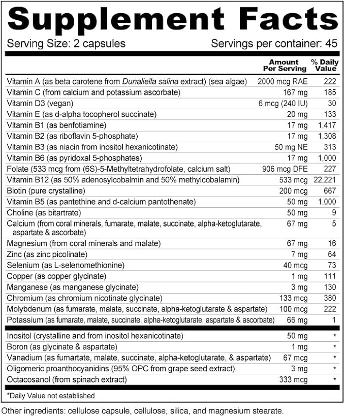 Wellness Resources Daily Energy Multiple Vitamin - 100% coenzyme B Vitamins Including Methylfolate and Methylated B12 with Other Important Cofactors for Energy, Stress, and Mood (90 Capsules)