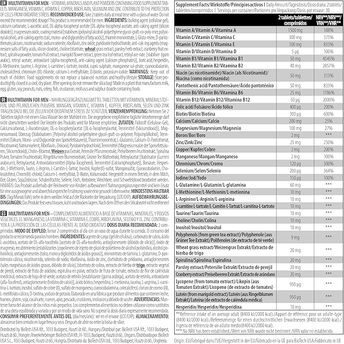 BIOTECH USA -MULTIVITAMIN & ANTIOXIDANT Complex for Men. 60 Tablets