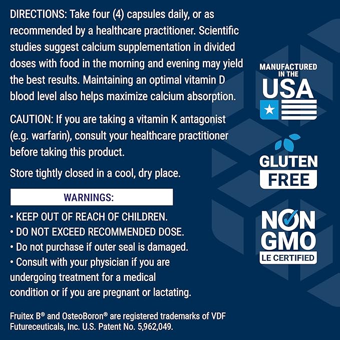 • Product Benefits : Includes zinc, manganese & silicon to support healthy bone formation, Augmented with vitamins D3 & K2, Bone & Joint Support, Delivers 3 types of easily absorbed calcium, Contains patented Fruitex B® OsteoBoron® for bone strength Includes zinc, manganese & silicon to support healthy bone formation, Augmented with vitamins D3 & K2, Bone & Joint Support, Delivers 3 types o… See more