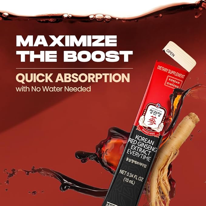 • ONE A DAY : Each stick pack contains the recommended does (3,000 mg) of Korean Red Ginseng Extract. It comes in individually packaged sticks for easy consumption and portability and the convenience of portability makes it even easier to meet your recommended intake