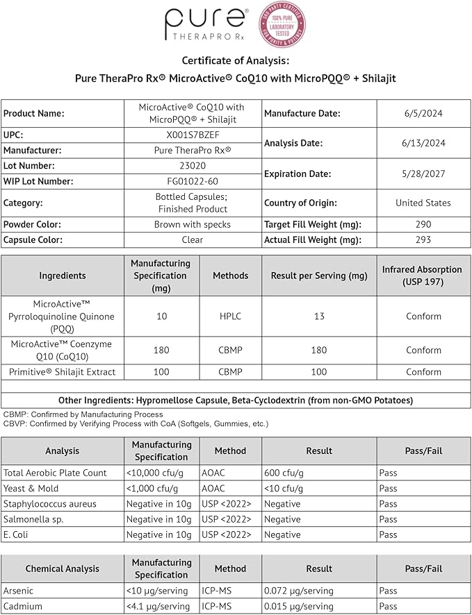 MicroActive CoQ10 Enhanced with MicroPQQ + Shilajit “Sustained Release” 60 Veg Caps | Convenient Once a Day Clinical Dose | 2 Month Supply | Vegan | Pharmaceutical Grade
