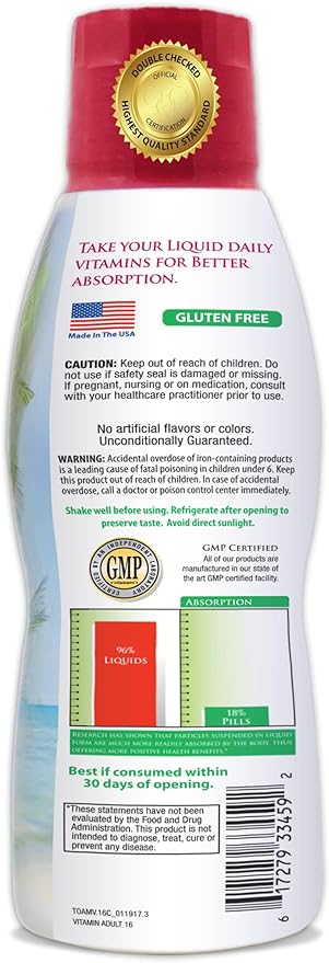 • ✅ Maximum absorption: liquid vitamins absorbed by your body up to 96% - compared to pills/capsules that are only absorbed about 18%.