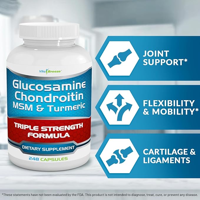 • Triple Strength Formula With Turmeric - More consumers choose to support their body with the VitaBreeze Glucosamine, Chondroitin, MSM and Turmeric supplement. Few brands offer ALL 4 of these powerful ingredients (especially Turmeric), and none with the same outstanding customer satisfaction as VitaBreeze. Do yourself a favor and start with the best.