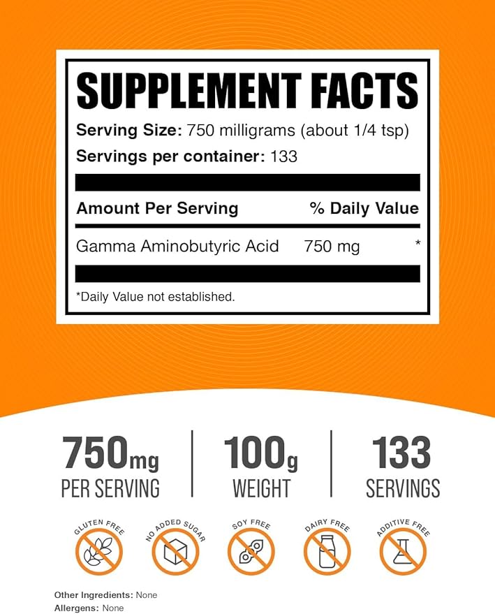 BulkSupplements.com GABA Powder - Gamma Aminobutyric Acid, GABA Supplement, GABA 750mg - Amino Acid Supplement, Gluten Free, 750mg per Serving, 100g (3.5 oz) (Pack of 1)