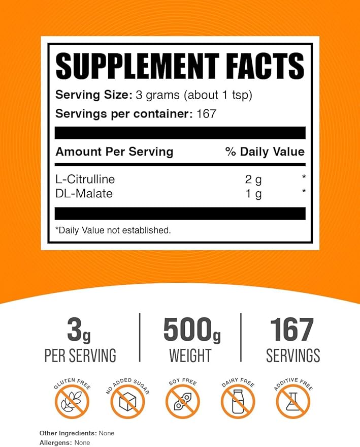 • Optimized in every Serving: Our L-Citrulline Malate powder, or Citrulline Malate 2 1, is unflavored and free of unnecessary allergens, offering you a high-quality product that easily integrates with other supplements or your preferred shake or beverage.