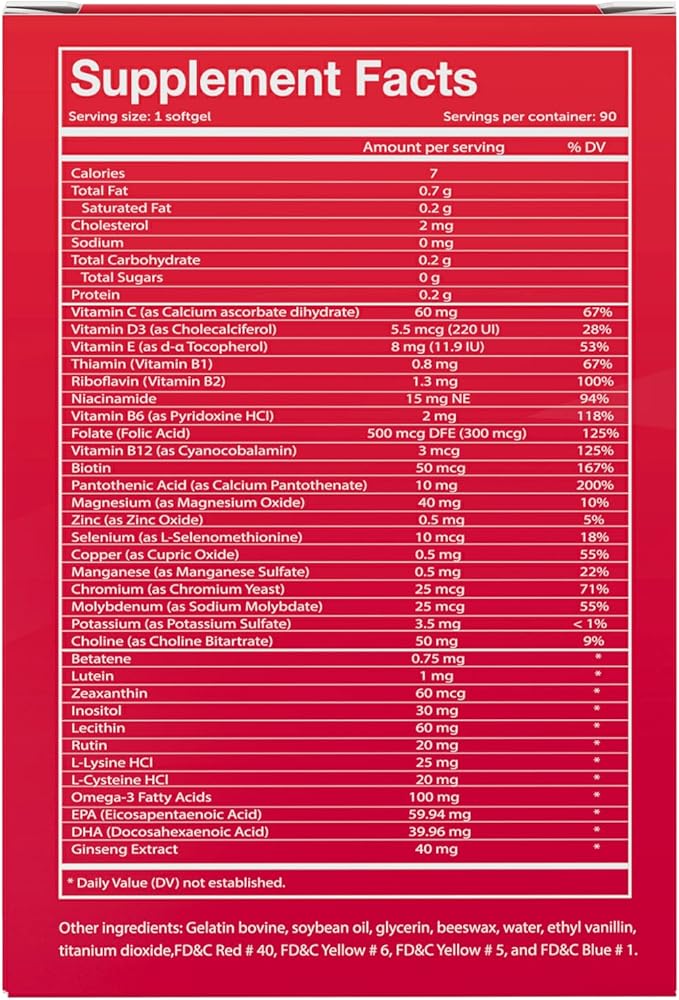 Vivioptal Active, 90 Softgels (1 Year Supply), Ginseng & Omega 3, Multivitamin & Multimineral, Gluten Free, German Formula