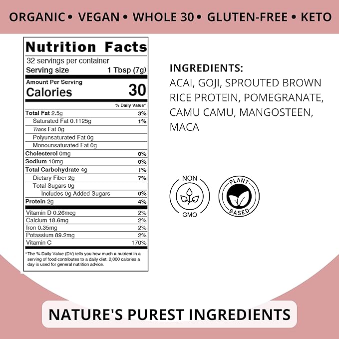 • NUTRIENT-DENSE SUPERFOOD POWDER - Bliss is a nutrient-dense superfood mix that combines organic acai, goji, sprouted brown rice protein, and other wholesome ingredients. It packs more protein than an egg and offers an impressive array of free radical scavengers. This blend is a convenient way to fuel your body with essential nutrients, supporting your overall health and well-being. Experience the nourishing power of this nutrient-dense superfood blend.