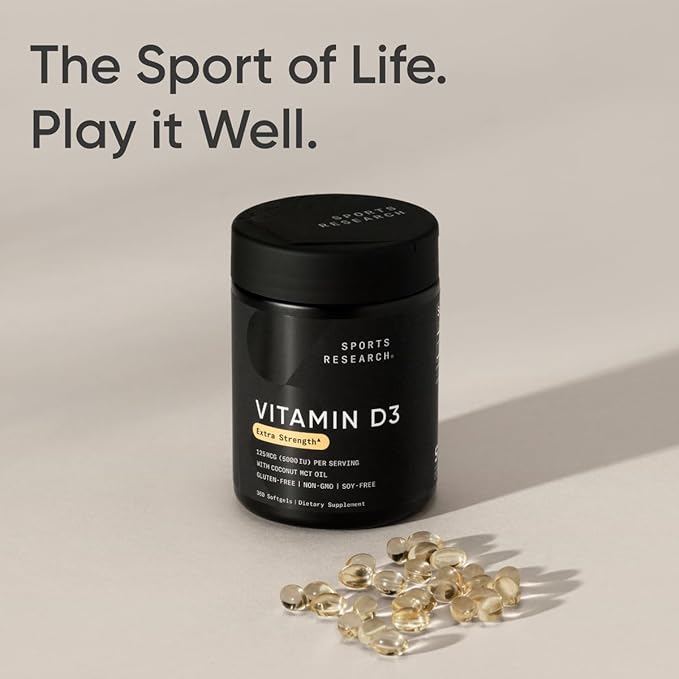 • PREMIUM QUALITY: We hold all of our supplements to a higher standard. Sports Research Vitamin D3 softgels are IGEN Non-GMO tested, and free of unwanted fillers, gluten, and seed oils such as soybean & safflower oil. Each batch is third-party tested for quality and manufactured in the USA in a cGMP-compliant facility.