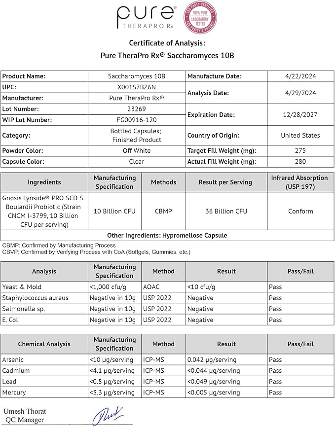 • Special Ingredients : Sacch B., Saccharomyces B., Saccharomyces Boulardii, Dairy Free, S. Boulardii