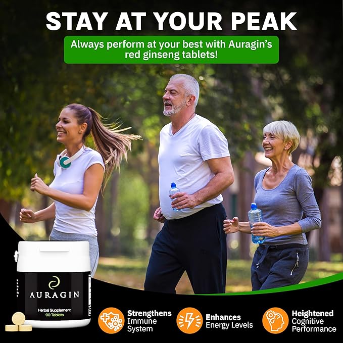 Auragin® Authentic Korean Red Ginseng – Made in Korea – 6 Year Roots – No Additives or Other Ingredients – 100% Red Panax Ginseng in Every Tablet