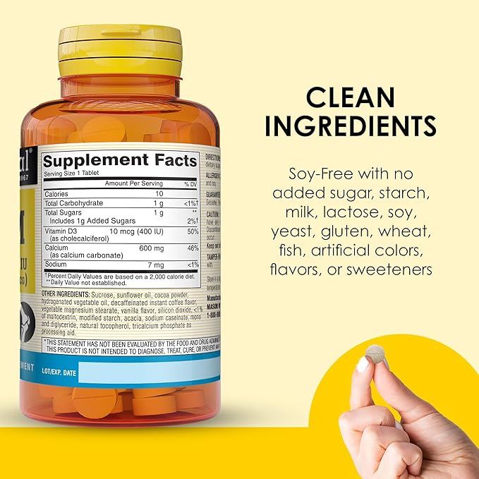 MASON NATURAL Calcium 600 mg with Vitamin D3 - Supports Healthy Bones, Strengthens Muscle Function, Coffee Mocha Flavor, 100 Chewables (Pack of 3)