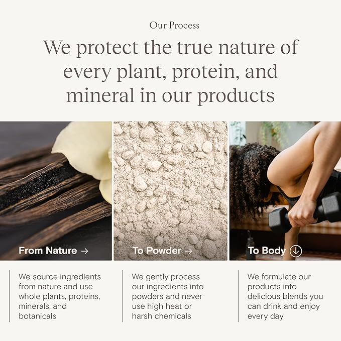 • We protect the true nature of every plant, protein, and mineral in our products through our process. From nature, to powder, to body!