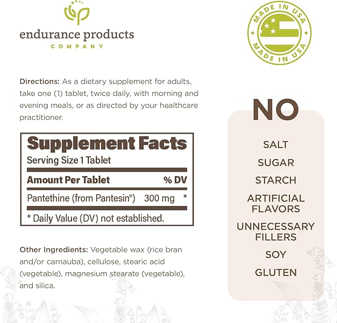 • Flavor : Pantethine from Pantesin, 300mg Sustained Release, 90 Tablets, Endurance Products Company