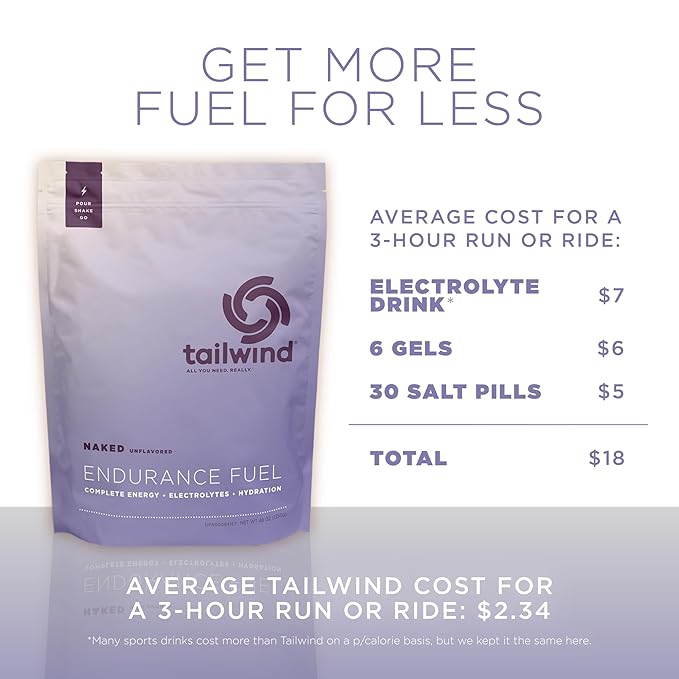 Tailwind Nutrition Endurance Fuel, Sports Drink Powder Mix with Electrolytes, Non-GMO, Free of Soy, Dairy, and Gluten, Vegan, Naked Unflavored, 30 Servings
