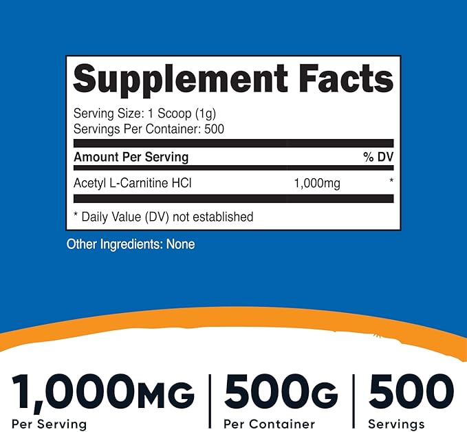 Nutricost Acetyl L-Carnitine (ALCAR) 500 Grams - 1000mg Per Serving - Pure Acetyl L-Carnitine Powder