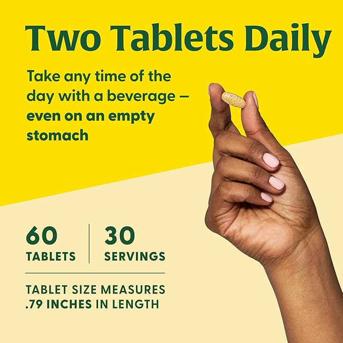 • Can be taken any time of day, even on an empty stomach. 2 tablets daily